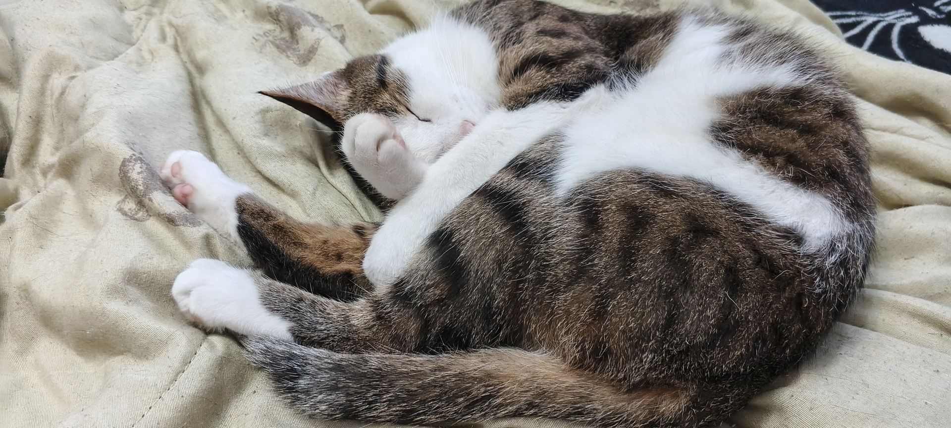 Кот устраивается рядом и начинает мурлыкать.